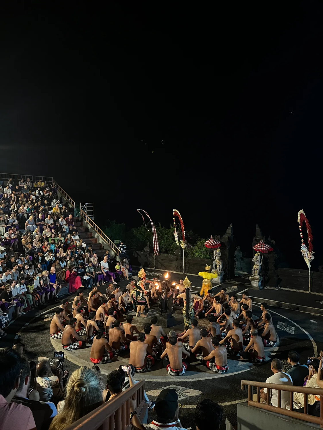 18:00 Чтобы познакомиться с балийской культурой и искусством, мы посмотрим — огненный танец Кечак на закате, который проходит на открытой сцене на территории храма.