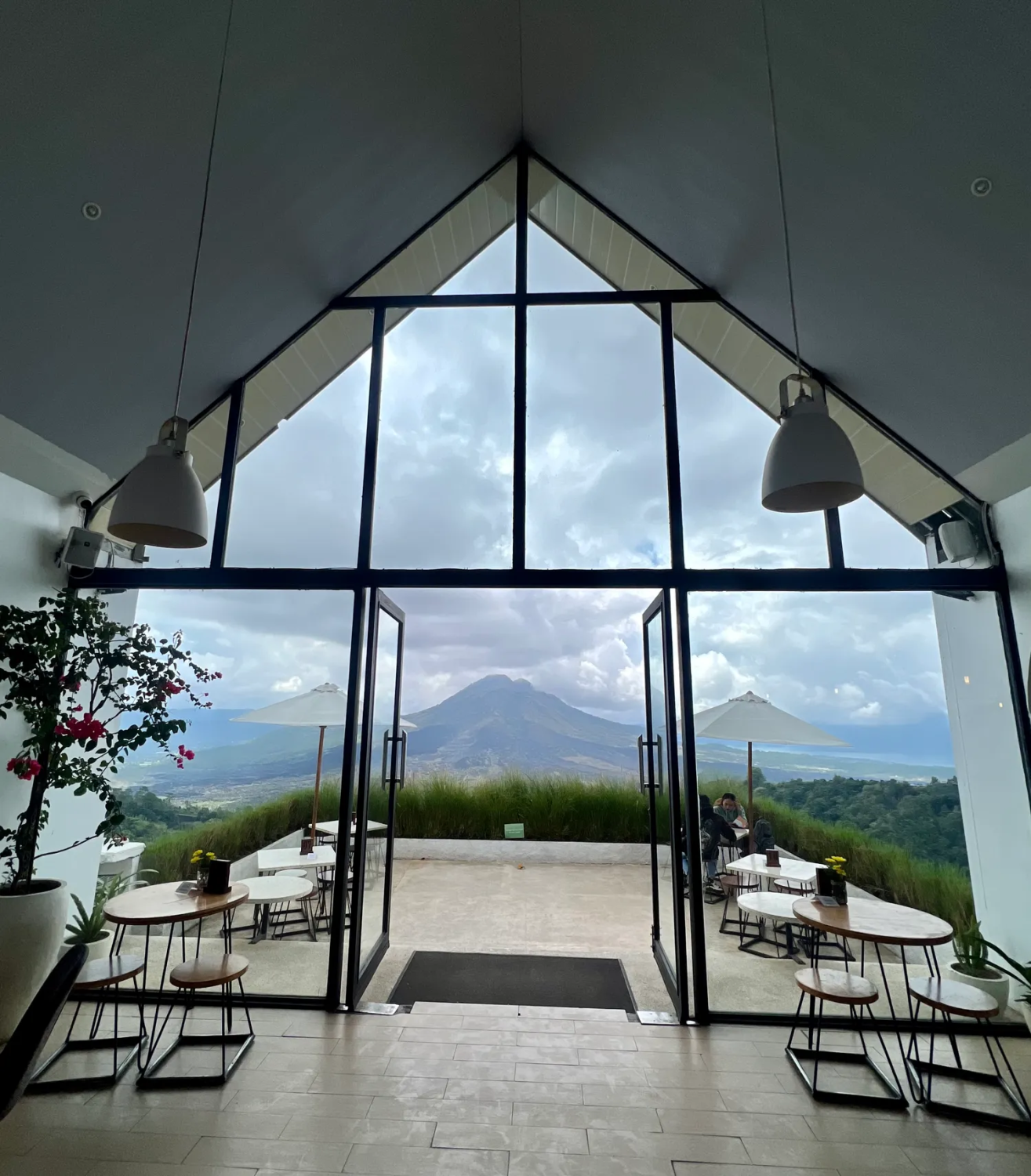 Здесь мы выпьем кофе в одном из кафе с потрясающими видами на вулкан Батур.