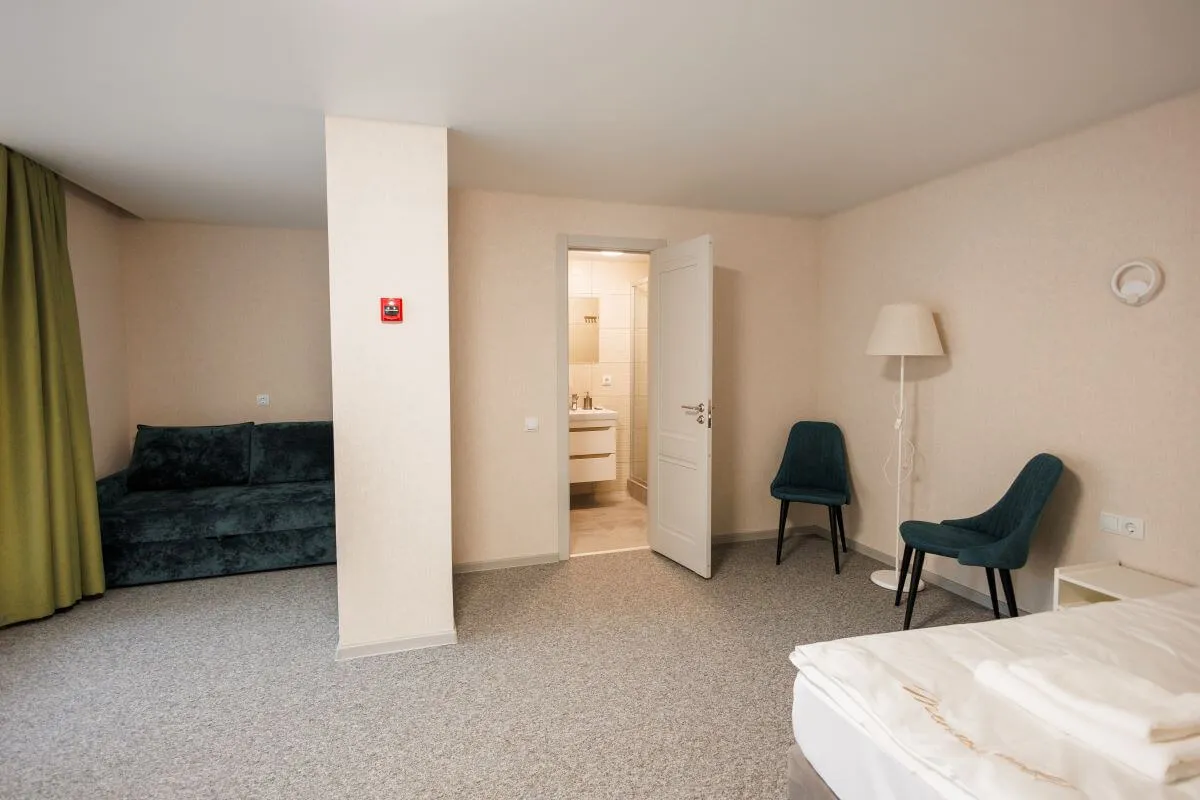 Комфортный, полностью укомплектованный номер для проживания большой семьи. Комплектация включает:
