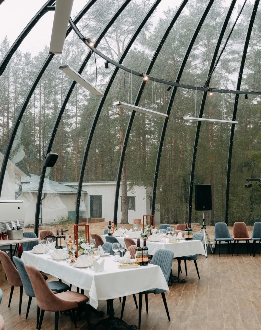 - русская баня с панорамным видом на лес, коллективные сеансы арома-парения;