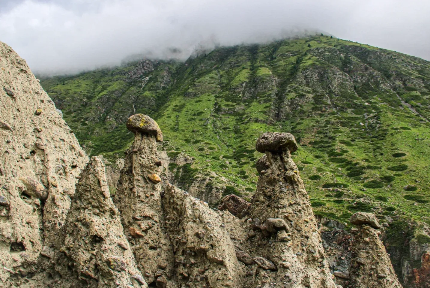 Мы переправимся на моторной лодке через реку и отправимся в увлекательный трекинг к Каменным грибам. До них нам предстоит пройти 2,5 км с набором высоты 200 метров. Трекинг будет проходить по живописному ущелью.